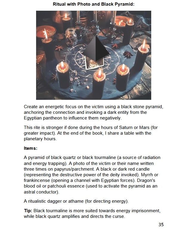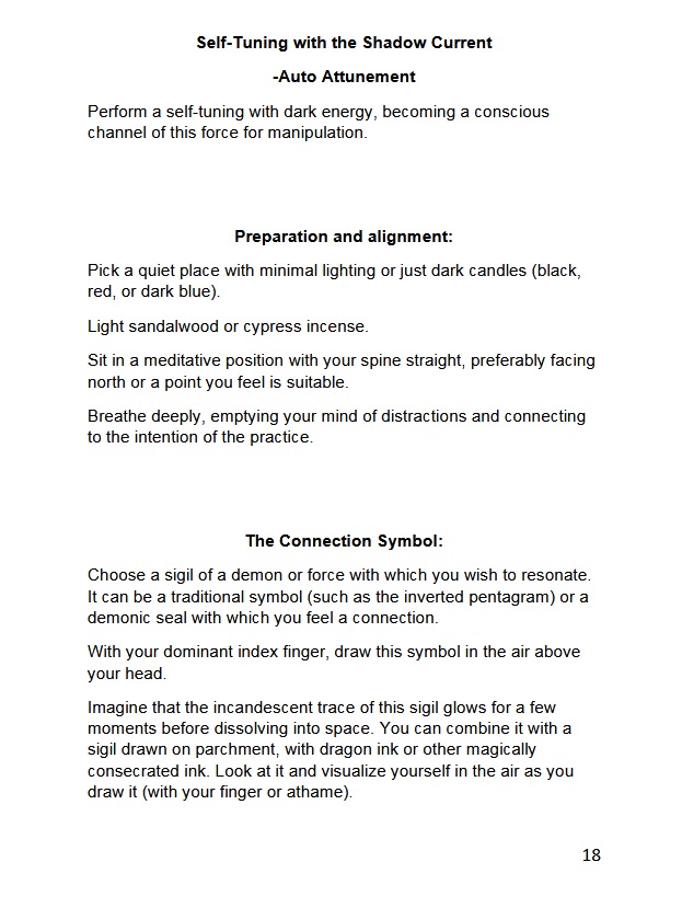 Dark Reiki is a unique system of remote negative influence, as powerful as Voodoo. This method created by Asamod Ka involves energy manipulation, energy vampirism, shadow work and rituals with Sumerian and Egyptian pantheon with dark deities. Psychic development with dark psy balls, manipulation of dark prana, black flame, and dark sekhm. Includes several rituals with crystals, photos, and objects of the target person, a glossary and more, over 100 pages.
