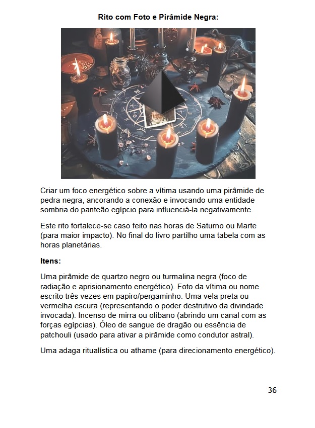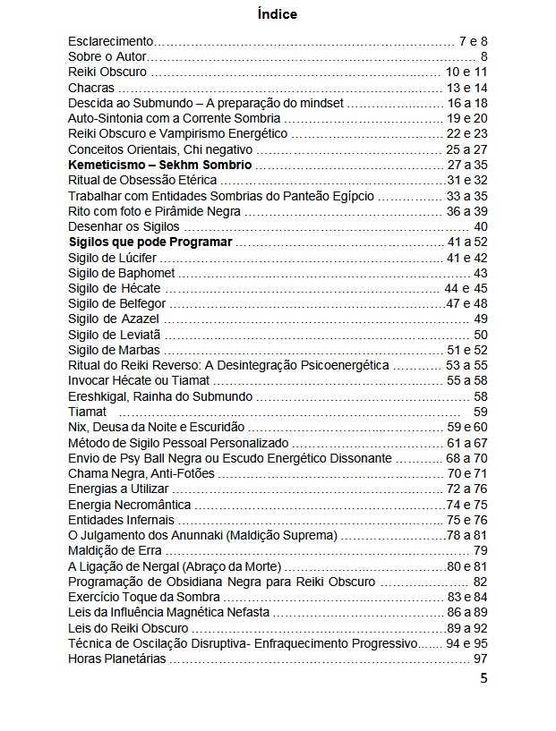 Inclui vários rituais com cristais, fotos e objetos da pessoa-alvo, feitiços com sigilos, glossário, entre outros, ao longo de 100 páginas.