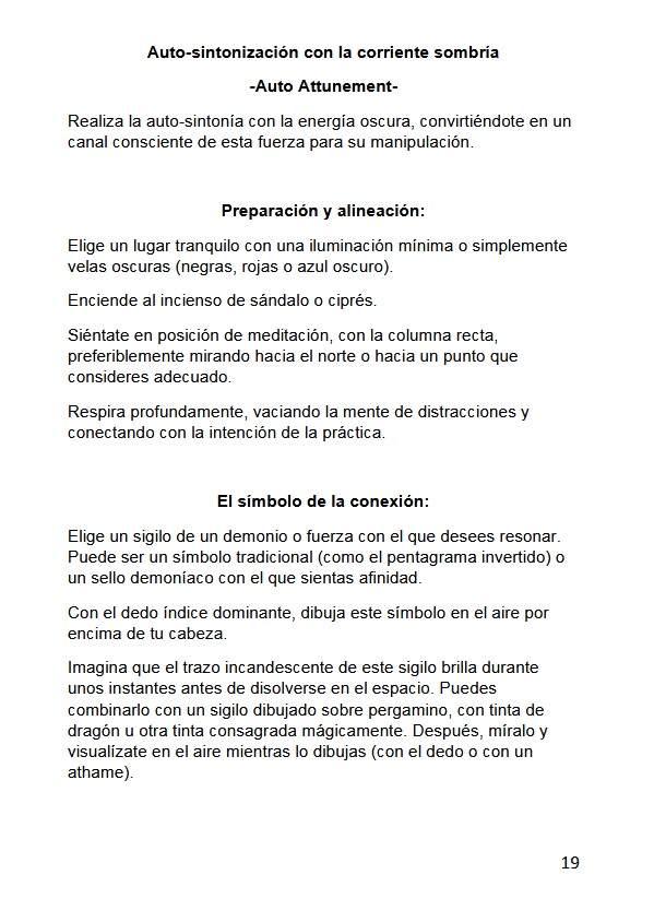 Incluye varios rituales con cristales, fotos y objetos de la victima, hechizos con sigilos, glosario, entre otros, más de 100 páginas.